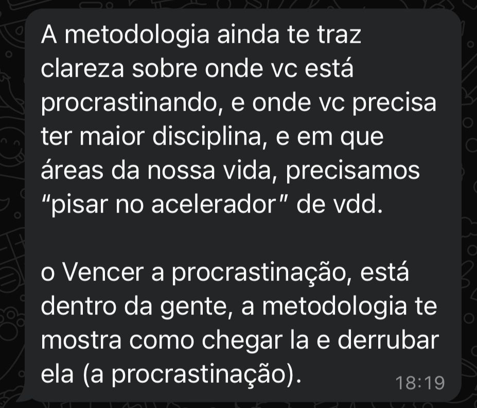 🎯 Em apenas 1 hora, de forma rápida e prática você vai entender por que você procrastina e como mudar isso sem esforço extra.
